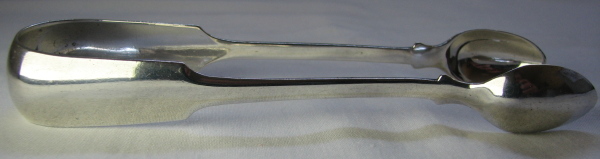 William Whitecross is recorded as working between 1824 and 1840. John Sim Rae was a co-worker of his. He appeared to have at least two marks, one with and one without a pellet. He is shown in Jackson’s with a Toddy ladle and a sugar spoon ascribed to him. These tongs are typical Scottish Fiddle pattern but with plain rather than shell bowls. Click on any picture to enlarge |