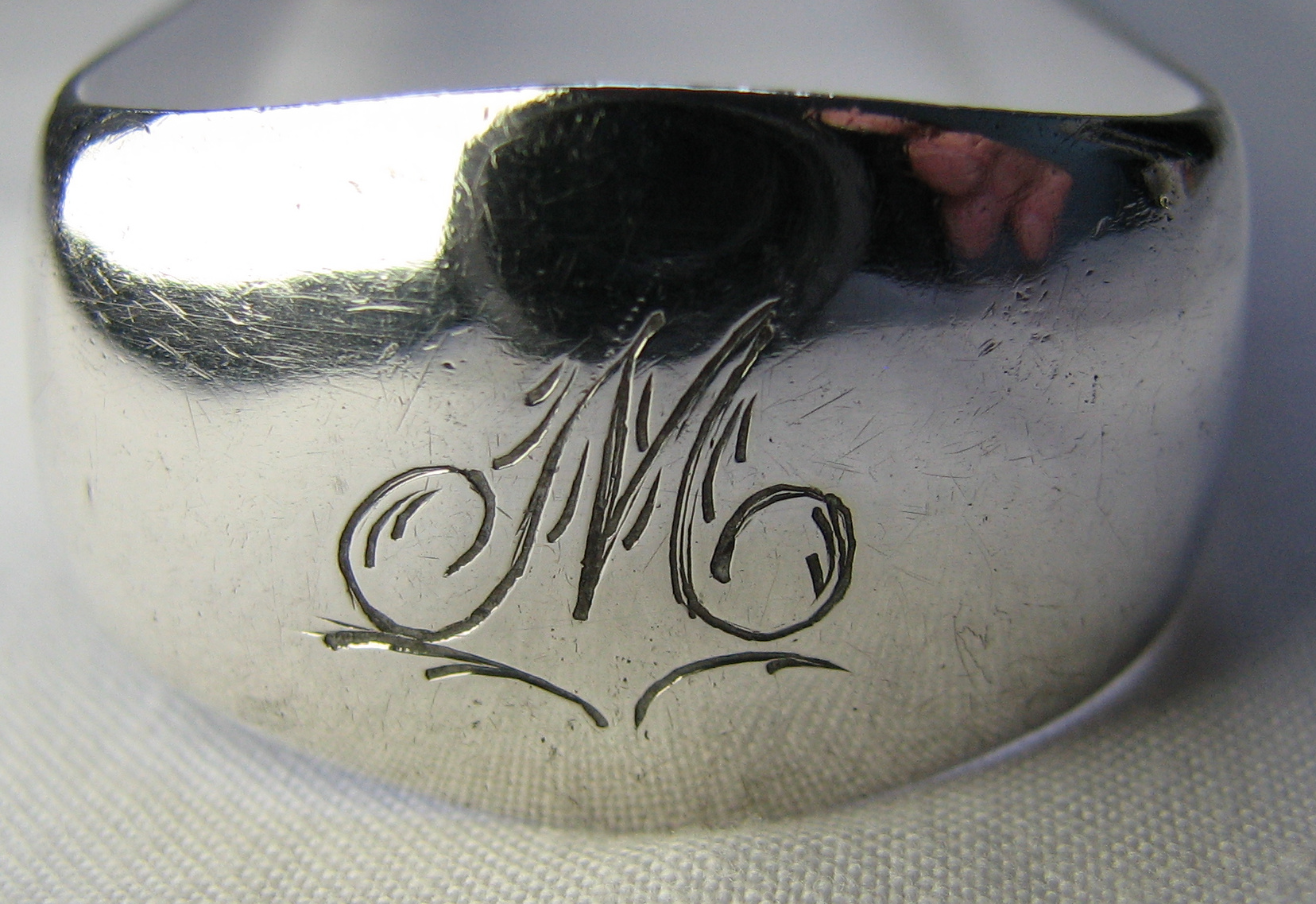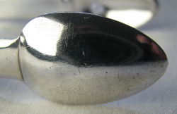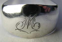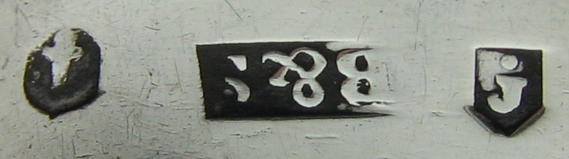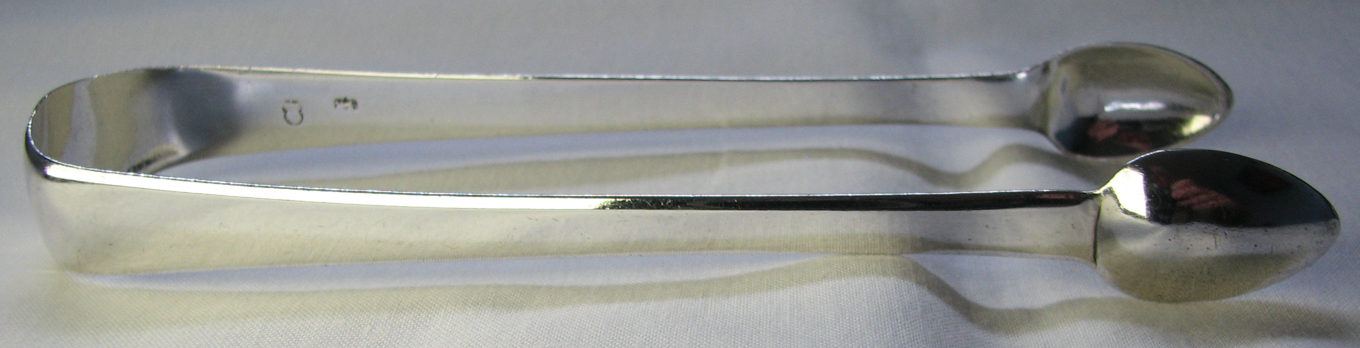 This is a very ordinary pair of plain "Old English" style tongs. They have clear Birmingham marks for 1807/08 and an engraved monogram.