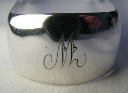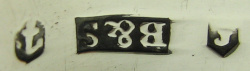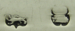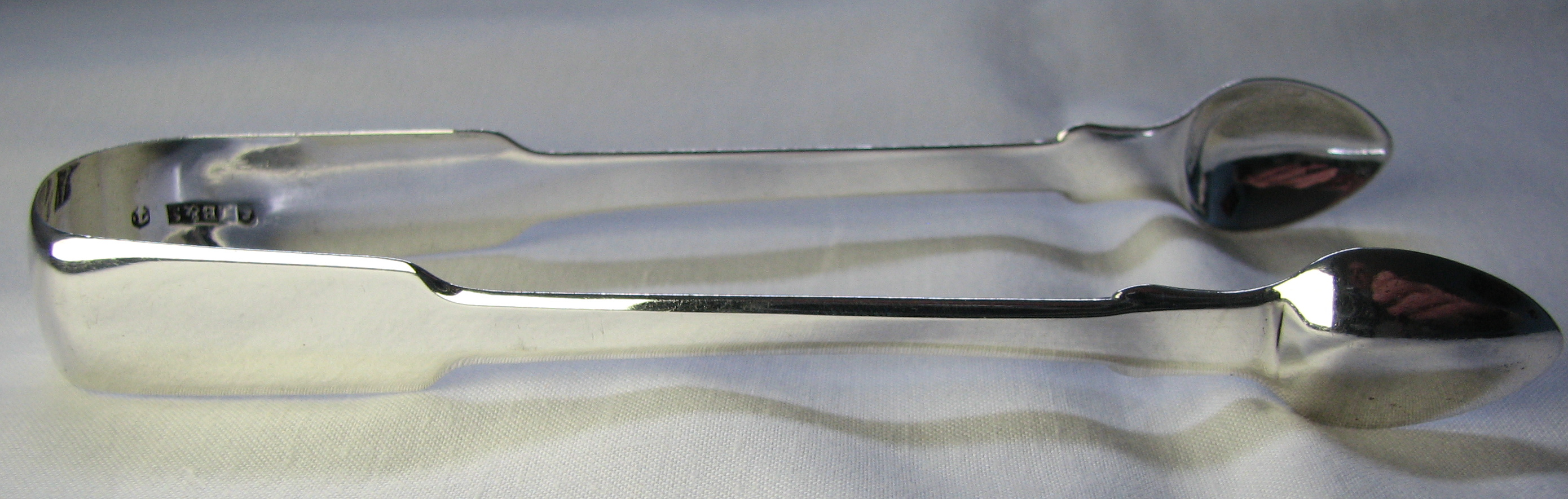 This is a very ordinary pair of Fiddle pattern tongs. They have clear Birmingham marks for 1807/08 and an engraved monogram.