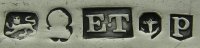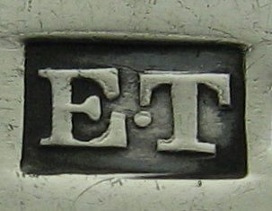 Edward Thomason registered his mark some time between 1803 and 1807. Jackson records work of his in 1817 and 1828. These tongs are dated 1813/14 and are very plain and un-remarkable. One curious feature of these tongs is that they are marked with the clipped duty mark. Jackson records that this mark has been replaced by a full oval duty mark by 1812. Clearly they were still using the clipped duty mark for some time after this.