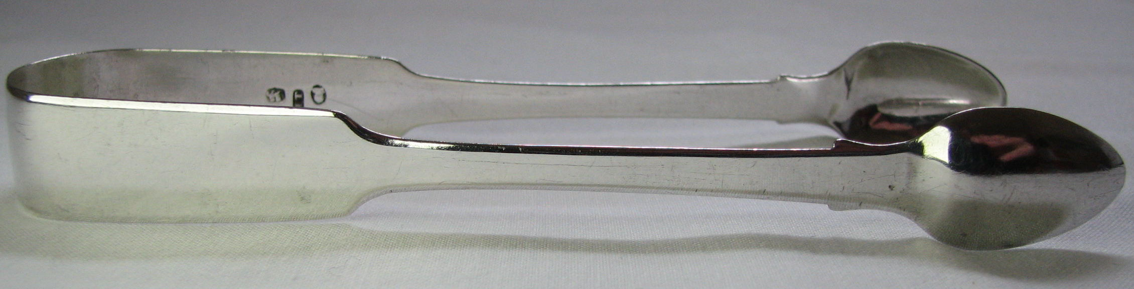 Joseph Taylor worked between 1800 and 1828. These tongs are standard fiddle pattern. The duty mark is complete so suggests a date during the early part of 1826/27.