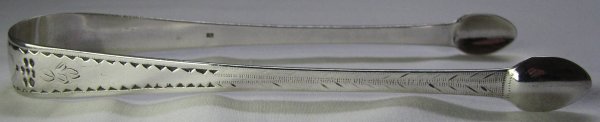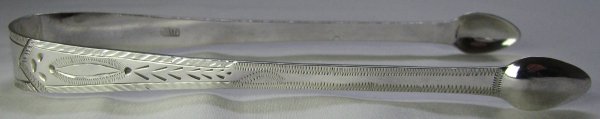 Sugar tongs from the Channel Islands are rare. In fact any early silver from the Channel Islands is rare. There has never been as assay office on the Channel Islands but silver has been made there from as early as the beginning of the seventeenth century. Generally silver will only have the maker's mark, but sometimes other marks can be seen such as a harp, a "J", "GH" or a fleur de lys. The channel Island law did state that the standard of silver was to be the same as that of England. Sugar tongs will usually be of a quite distinctive style, very often with a monogram which is three letters rather than the more normal two. Charles William Quesnel is one of the most prolific of the Jersey silver-smiths and was producing work from c1810 - 1850. There are 2 marks seen "CQ" and "CWQ" click on any picture for more details |