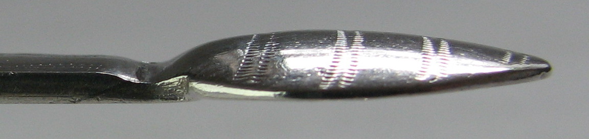 Repairs to the bowAs indicated earlier, the bow is the most susceptible to damage and therefore the most often subject to a repair. Repairs to a split bow can be of a variety of qualities. I have shown a few below, some are plate repairs, some solder. The key point to remember is that with a very close look, these repairs can always be detected.