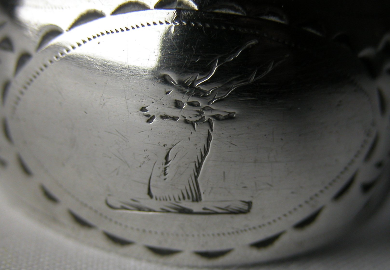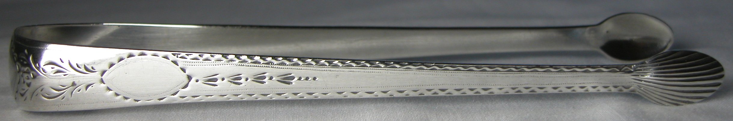 Jackson records Thomas Tudor’s mark on a caddy spoon dated 1797. There were also at least two other makers with the initials “TT”, Thomas Taylor who was made a freeman in 1789, and Thomas Townsend whose mark is also illustrated by Jackson, stamped on a Pewter plate from the Dublin Assay office.The mark on these tongs definitely looks like "IT" rather than "TT" Also given that they are dated 1793 or before, it is very unlikely that they are by Thomas Tudor. These tongs are typically Irish in style and are dated between 1787 and 1793 Click on any picture to enlarge |