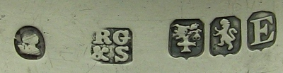 Robert Gray is recorded in Jackson as both Edinburgh and Glasgow. We know that there was no assay office in Glasgow between 1784 and 1819 so Robert Gray would have had to have sent his work to Edinburgh for assay, which would explain why we sometimes don’t see Glasgow hallmarks on his work of this period. These tongs ARE hallmarked for Glasgow, dated 1823. Click on any picture to enlarge |