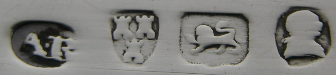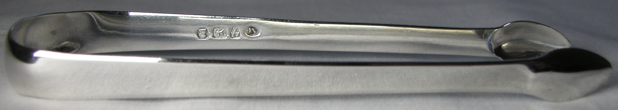 Ann Robertson was the widow of John Robertson I who died in 1801. She worked between 1801 and 1811 when she handed the business over to John Robertson II – her nephew. Ann Robertson sugar tongs are quite rare. This pair is completely plain with a concave shaped bow. The hallmarks are struck alongside the maker’s mark rather than on the opposite arm. Click on any picture to enlarge |