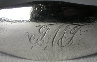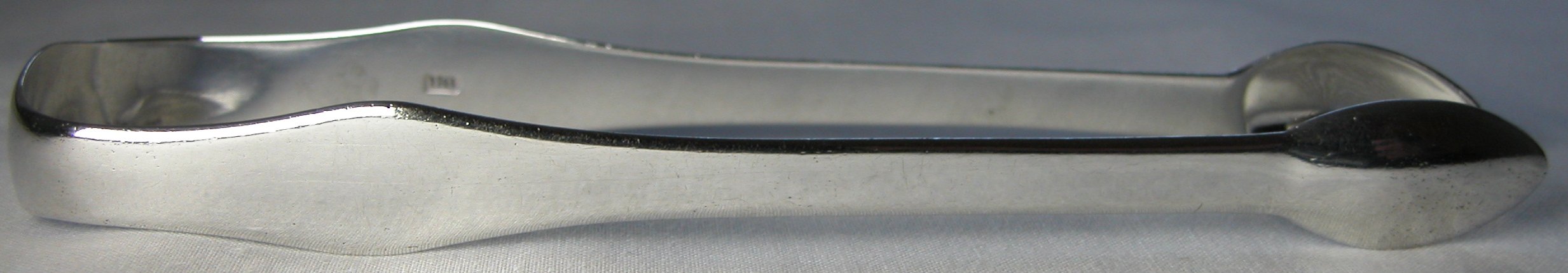 This pair of tongs is plain and flared with an engraved monogram. They are difficult to date as the hallmark is partially worn but they are likely to be dated between 1808 and 1820.