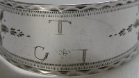 These tongs are straight, bright cut tongs. They have very crisp and clear engraving and unusually their marks are struck near the bottom of the arms. This is usually an indication of Scottish tongs. They are dated at c1786. Click on any picture to enlarge |