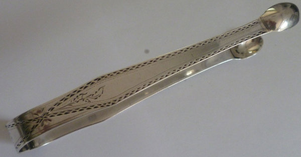 lovely pair of flared, bright cut tongs. From the hallmark they will
