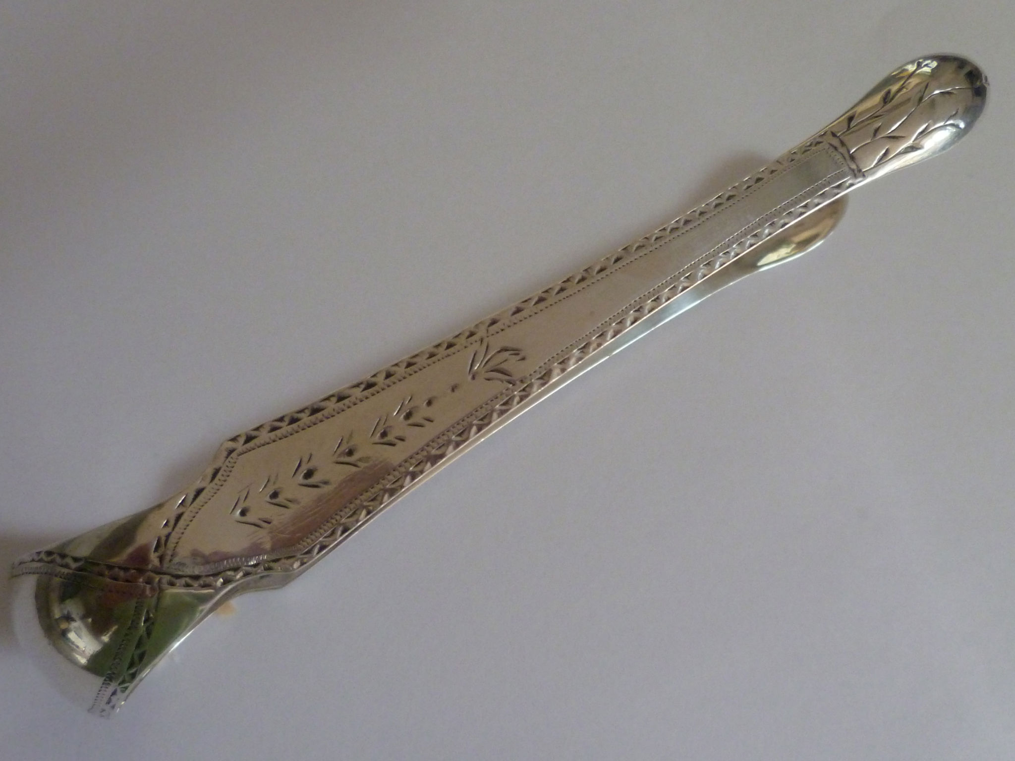 These tongs are a delightful pair of bright cut tongs with lovely engraved bowls.