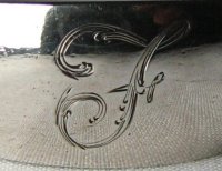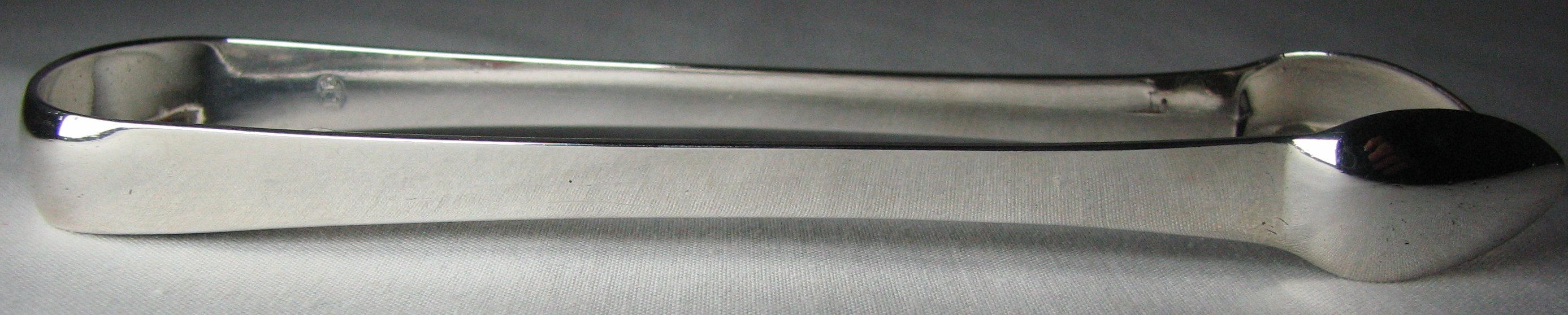 This pair of tongs is a pair of completely plain tongs. The bowls are very curved, inwards, although this is difficult to see from the photograph. They also have a very well engraved monogram "F". They are dated c1800 - 1804. click here to see more tongs by John Langlands II Click on any picture to enlarge |