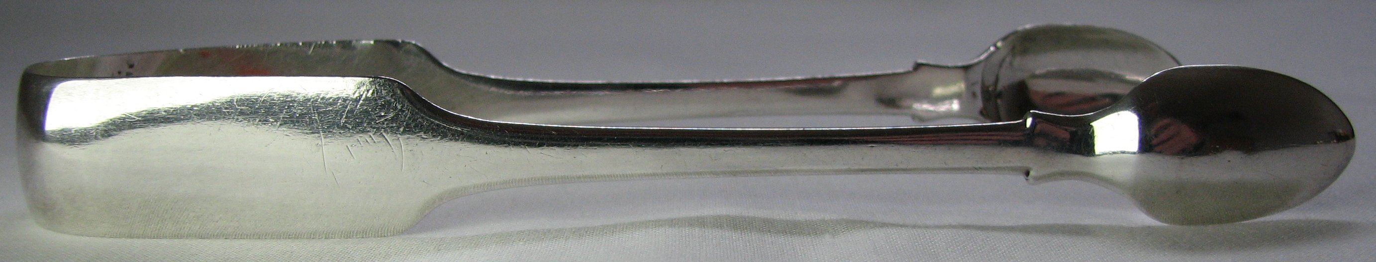 John Coakley was a Liverpool manufacturer who was working some time around the 1820’s. He later sold his business to John Sutter. These tongs are standard fiddle pattern tongs with full Chester marks for 1828.