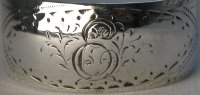This is a pair of straight edged bright cut tongs with an engraved feather style motif to the tops of the arms, dated 1788.