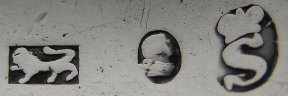 This is a pair of fairly plain flared tongs with just a light feather edge engraving. They are dated 1807.