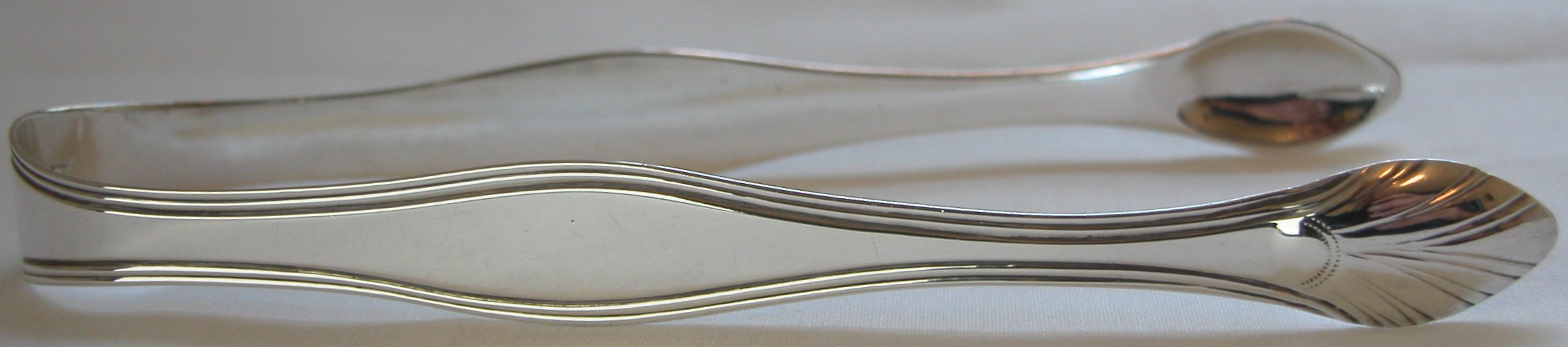 These tongs are plain with a double thread edge. This is quite unusual for early Sheffield work as it was nearly always bright cut. The tongs are dated 1798.