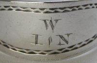 These are a standard pair of flared, bright cut tongs. The fan of engraved lines in the bowls are similar to another pair of Thomas Lamborn tongs. The tongs are dated 1799.