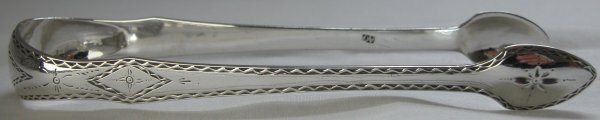 Alexander Gairdner registered his mark in 1754. Jackson’s records his mark up to 1790. In fact, courtesy of "The Incorporation of Goldsmiths of the City of Edinburgh" we know a lot more about him. He died in 1803 and had presumably been working up until shortly before then. He had been apprenticed to William Aytoun, one of the most famous of Edinburgh silver-smiths. He was also a Deacon from 1772 to 1774. He went on to have a new trading name of "Alexander Gardner & Co" in 1797 when he took his son on. click here for tongs by Alexander Gairdner & Co. Click on a picture to see more details |