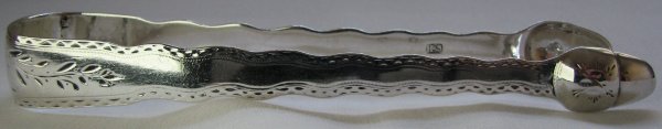 These tongs are by James Hewitt & Robert Swan. Their mark is recorded at the Edinburgh Assay Office and can be seen on their web-site. They are recorded as being seen dating between 1784 and 1789. James Hewitt was born in 1731 and was mentioned between 1760 and 1808. Robert Swan was James Hewitt's apprentice and went into partnership with his former master. Robert Swan is recorded between 1786 and 1797. He apparently left Scotland in 1794.