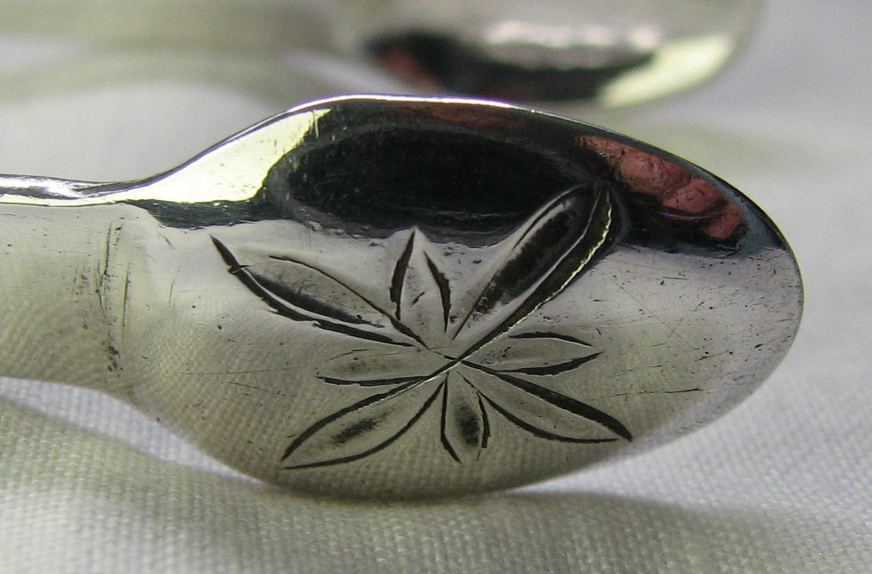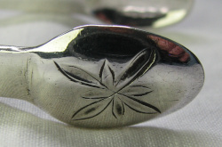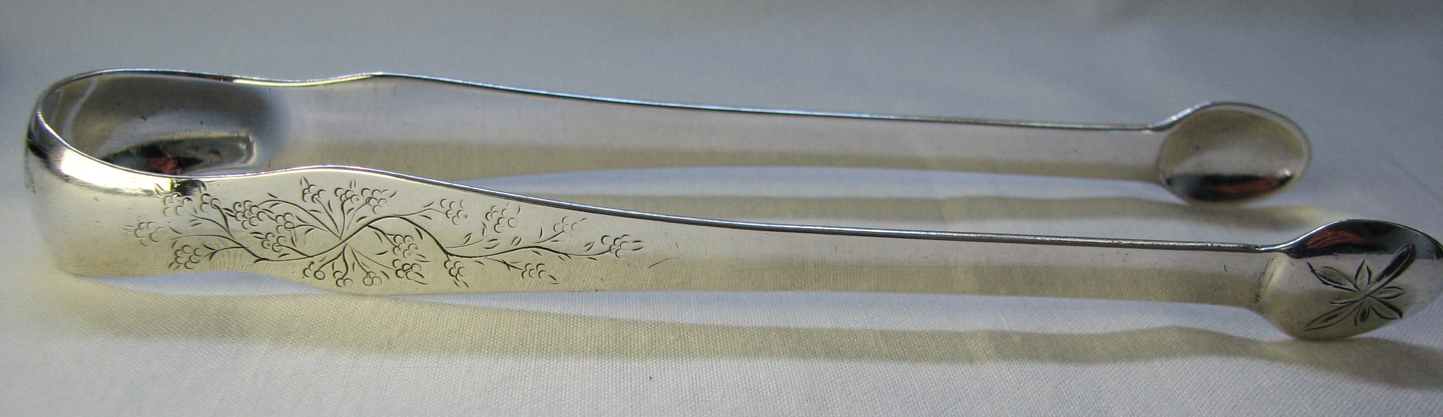 They are a delightful pair of bright cut tongs with a superb flower pattern to the tops of the arms such as I have never seen before. Click on any picture to enlarge |