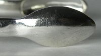 W & P Cunningham’s earliest mention is 1778 according to Jackson. There are many Cunninghams registered in Edinburgh. These tongs are dated 1805 and are completely plain tongs with large bowls, quite normal for the period. Click on any picture to enlarge |