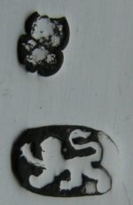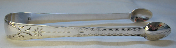Notice that the earlier dated tongs have the maker's mark initials the opposite way around to the pair