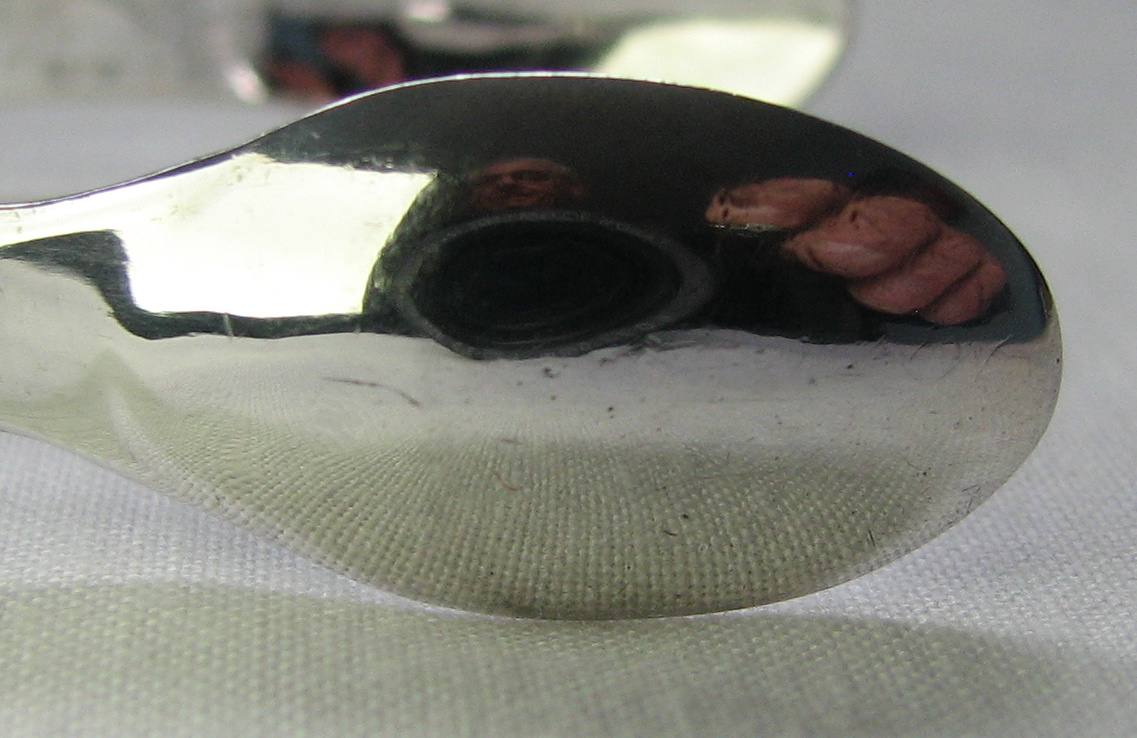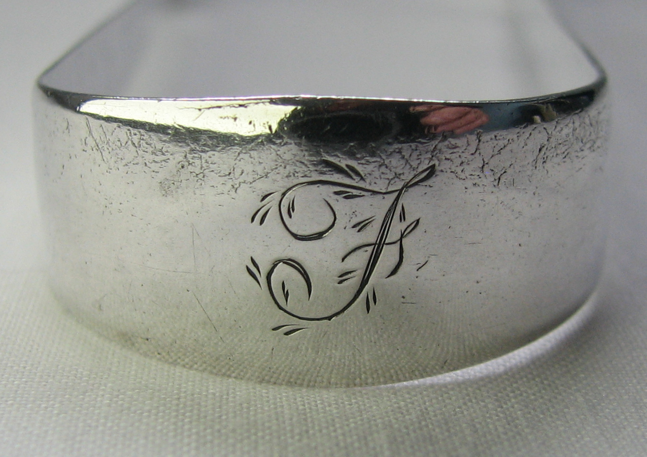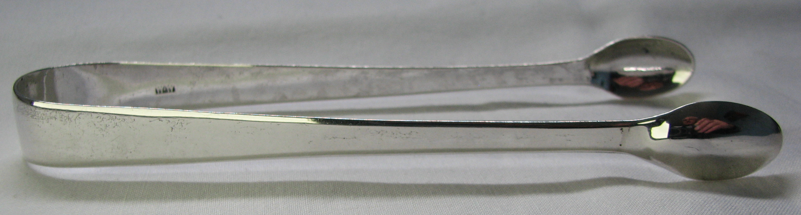 These tongs are completely plain and fairly narrow. The hallmark suggests a date of between 1798 and 1804.