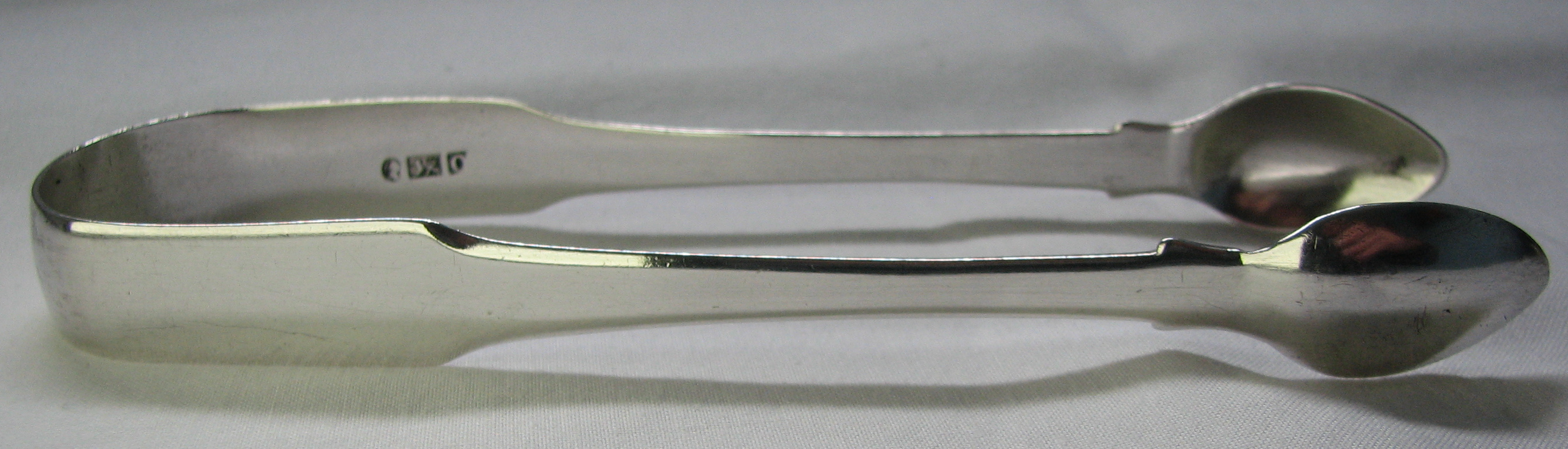 These are a very ordinary pair of fiddle pattern tongs. They are dated 1810/11. Given that the date letter is a little worn, they could potentially be dated 1811/12, if it is a "Q" rather than a "P".