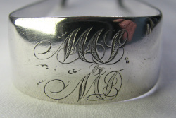 fashion. They have a very elaborate monogram that appears to be "MAS" over "MB". Notice
