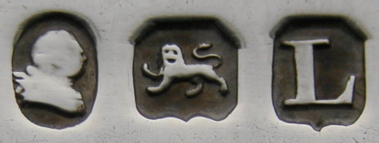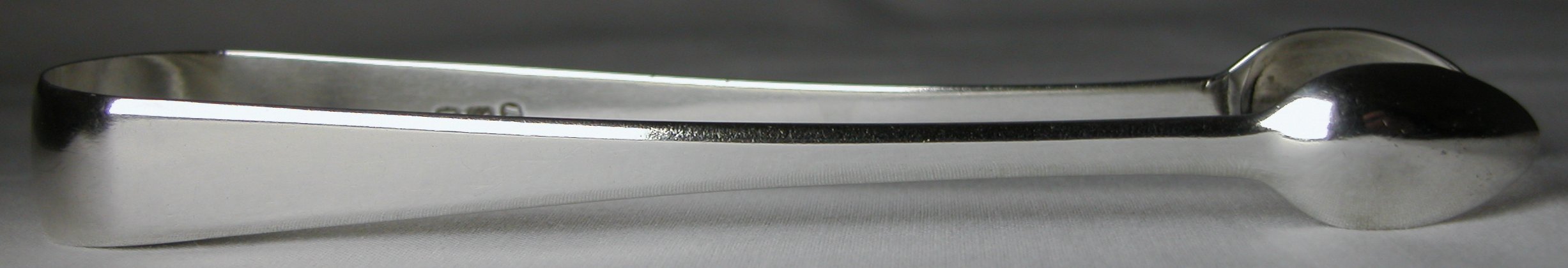 Edward Lees entered his first mark on 22nd February 1803 as a Spoon-maker. His second mark was entered on 30th June 1806 and was rectangular with a cut corner to the top right. These tongs are completely plain and show his second mark. They are therefore dated between 30th June 1806 and 29th May 1807. Click on any picture to enlarge |