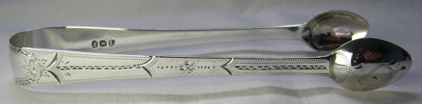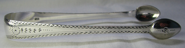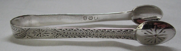 Edward Lees entered his first mark on 22nd February 1803 as a Spoon-maker. His second mark was entered on 30th June 1806 and was rectangular with a cut corner to the top right. Tongs by Edward Lees are fairly rare, perhaps due to the short time he was working? Click on any picture to enlarge |