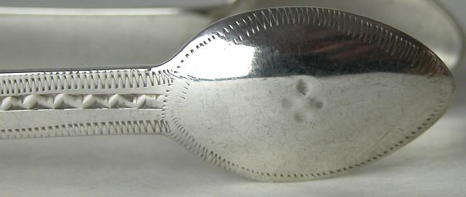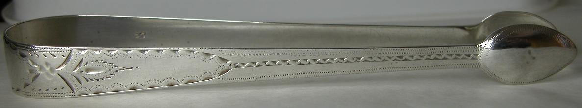 These are a pair of fairly standard London bright cut engraved tongs. They are dated between 11th October 1804 and 28th May 1805.