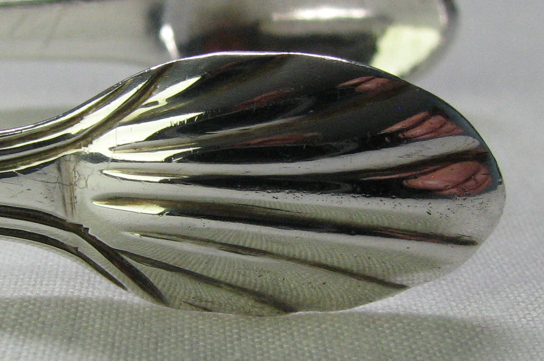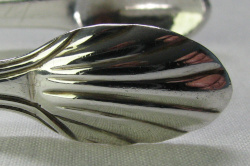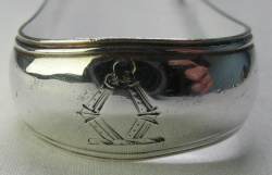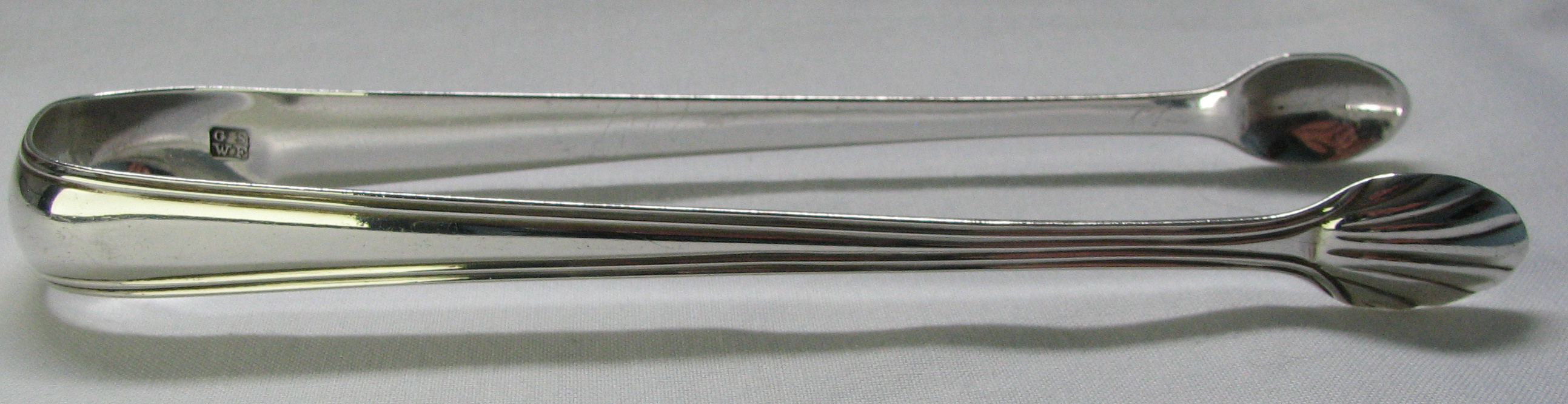 This is a plain pair of tongs, with a double thread edge, concave bow and the characteristic deep cut lines to the bowls. They are particularly interesting being blessed with a delightful crest. They are dated between 1786 and 1790. Click on any picture to enlarge |