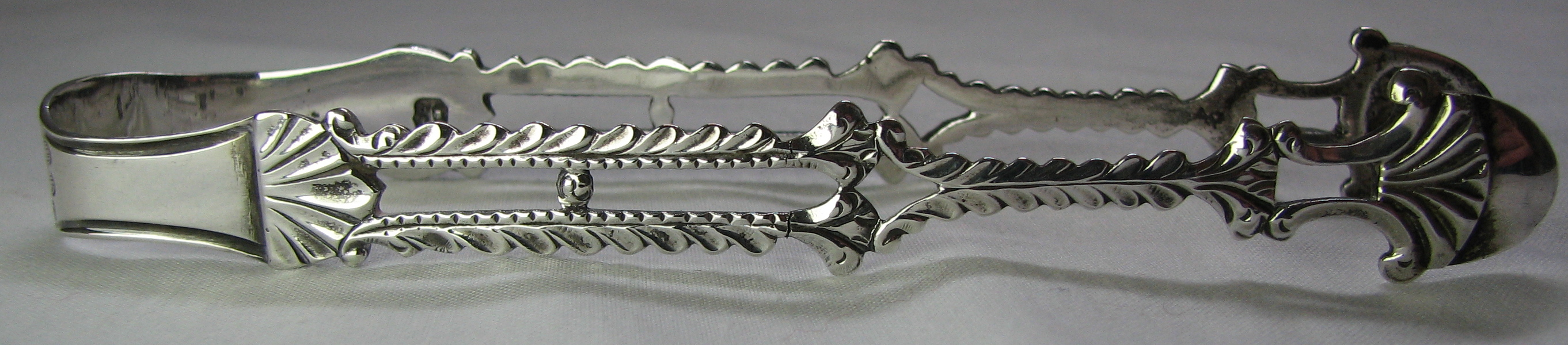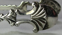 Hester Bateman is one of the most famous silver-smiths of the 18th century. Most of her silver sugar tongs are of the standard style, but she did also make cast tongs. This pair are not of excellent quality apart from a small crack on one of the arms. Click on any picture to enlarge |