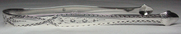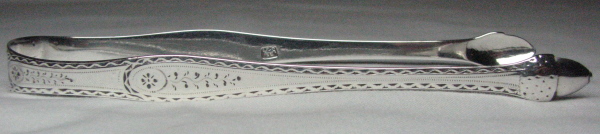 This page gives some examples of Hester Bateman silver sugar tongs covering the period up to 1st December 1784. This is before the duty mark was introduced, which means all tongs of this period will be marked with the Lion Passant and maker's mark only. The maker's mark is not quite identical on all the tongs, but then Hester did use rather a lot of different marks! Click on a picture to see more details |