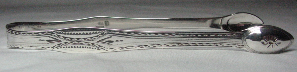 This page gives some examples of Hester Bateman silver sugar tongs covering the period 1785 to 1786. This is when the duty mark was first introduced and was "incuse". As the incuse mark was only in use for such a short period of time, these sugar tongs are quite rare - and easy to date! Click on a picture for more details |
