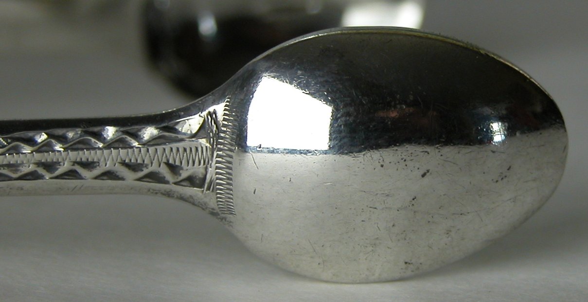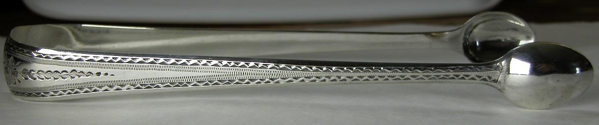 The name Chawner is very famous. In fact Henry was Thomas Chawner’s son. Thomas Chawner was apprenticed to the great Ebenezer Coker. Henry entered his first mark on 11th November 1786. He worked alone until he entered a mark in partnership with John Emes on 27th August 1796. Henry Chawner was not linked to the Chawner company. These sugar tongs are unusually long, nearly 6 inches, are bright cut, but with plain bowls, dated 1794/95. Click on any picture to enlarge |