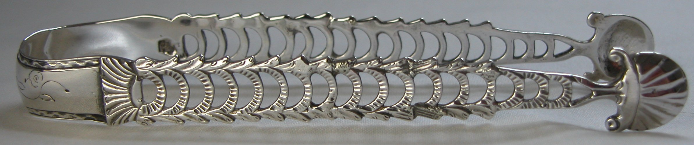 These tongs are a lovely pair of cast tongs with unusual “serated” type casting and small scrolls on the bowls. I have dated these tongs at c1770.