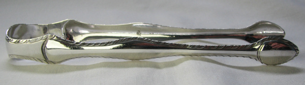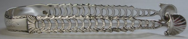 John Bourne and Thomas Moore III worked together from 26th June 1770, when they registered a mark as a "Small-worker" through to (probably) 1774. John Bourne registered his own mark alone on 2nd February 1774. They did also register as buckle-makers on 8th February 1775. Their registration is a bit curious as Thomas Moore was a London man and John Bourne was from Staffordshire. When John Bourne registered his marks on his own, he was living in London. Grimwade, goes onto comment that this partnership "is very extraordinary and it may perhaps be that Bourne was temporarily away from London or a sleeping partner". Click here for tongs by Thomas Moore III Click on any picture to enlarge |