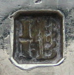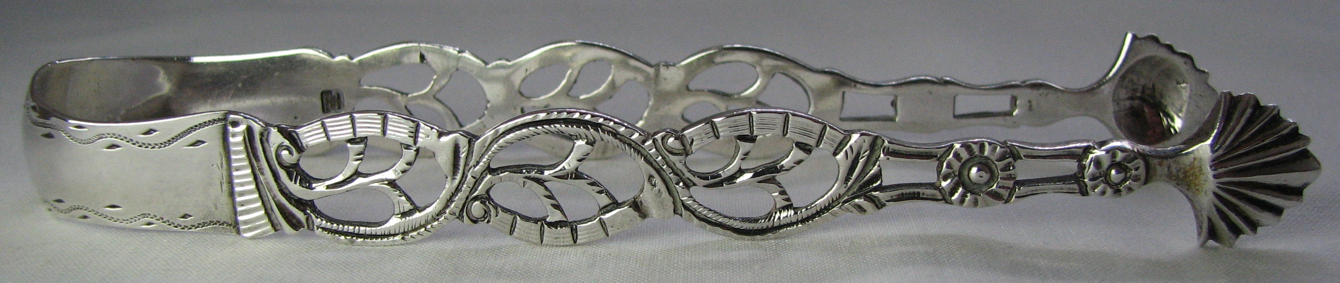 John Beedall & John Bennett registered a mark as buckle-makers on 29th July 1775. There is also a John Bennett recorded by Grimwade who registered a mark as a small-worker on 9th December 1761 and then went on to register marks as a haft-maker and a hilt-maker, but we don’t know if this is the same John Bennett. These tongs are lovely cast tongs, with a good pierced pattern and bright cut engraving to the bow. We cannot be certain that this is the maker of these tongs, however there are no other recorded makers with the mark "IB IB" Click on any picture to enlarge |