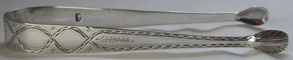 The "IC" maker's mark is attributed to several silver-smiths around the period from 1760 to the early 1800's, so as is often the case we cannot be certain who the maker of a particular item is. Joshua Cooper registered his first mark on 17th October 1786 as a buckle-maker. He then entered a mark on 14th September 1789 as a small-worker. It seems likely that Joshua Cooper may have made sugar tongs. I have attributed the later of the 5 tongs shown below to Joshua Cooper as there really is no other maker of this period who is very likely. Although there is a Joseph Cooper who was a gold-worker who registered marks between 1796 and 1799 who is a potential (but unlikely candidate). Another possibility is John Carter II but he is identified as a specialist candle-stick maker and is shown to have only worked until 1777. This therefore probably rules him out. The two earlier tongs are almost certainly NOT Joshua Cooper as they are too early. Click on a picture for more details |