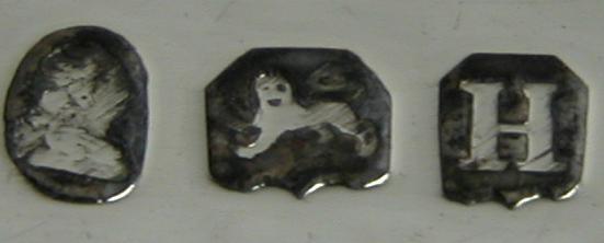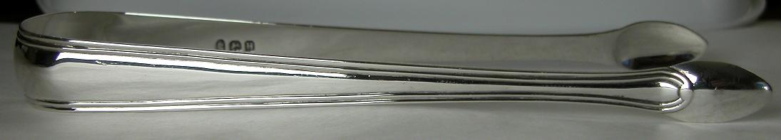 These tongs are dated 1803/04 and are plain with a heavy double thread edge. The maker's mark has a clear pellet between the I and D.