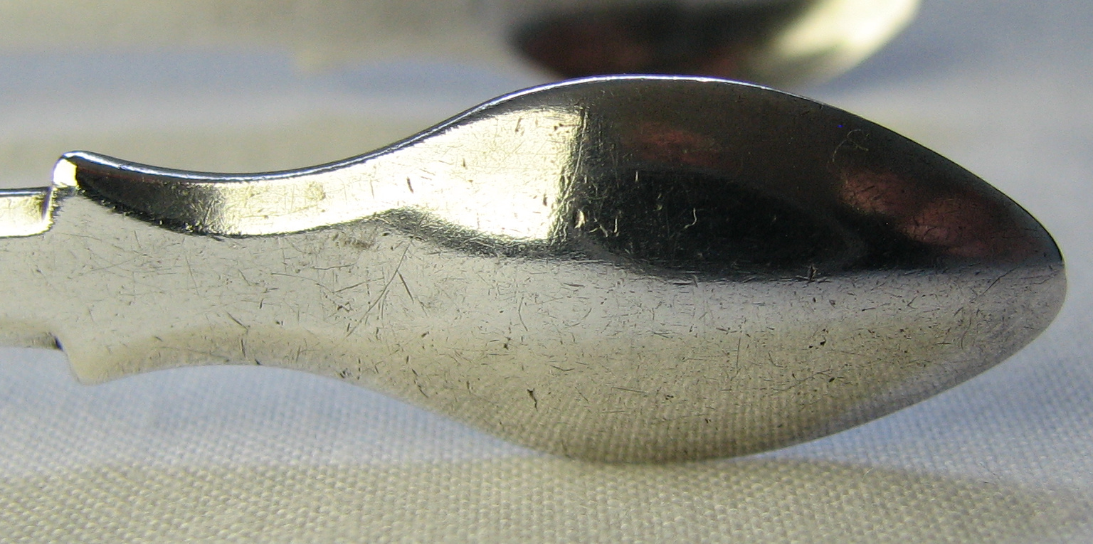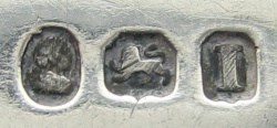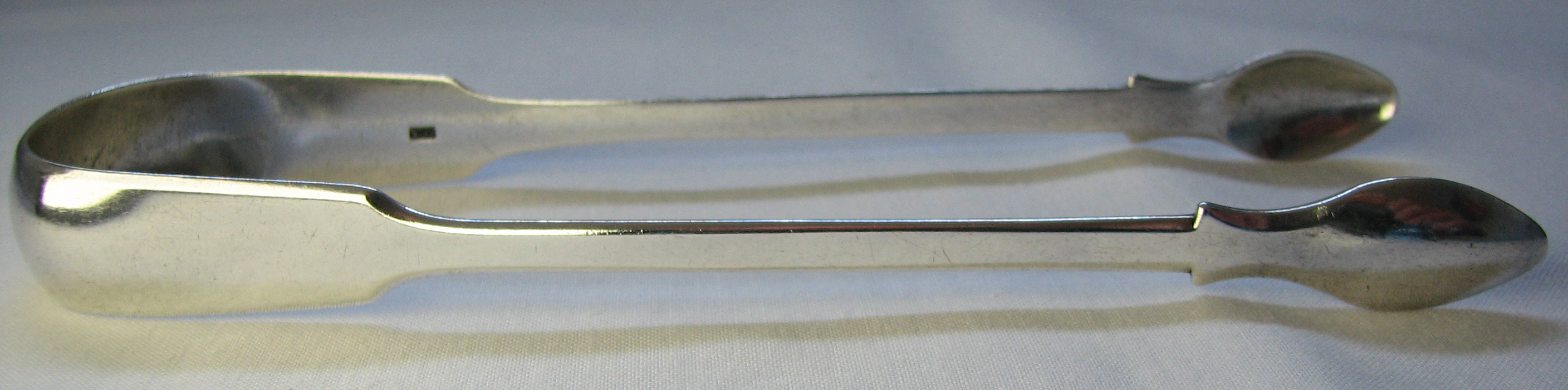 July 1803 and another on 29th June 1808. There are other potential makers around this time with the maker's mark of "ID" with a pellet between the letters. John Dare - registered a mark on 9th February 1773 - believed to be a large-worker John Deacon - (no pellet) registered a mark on 11th September 1776 but was reported as bankrupt in April 1775 John Dutton - registered a mark as a small-worker on 7th August 1776 but is believed to have specialised in leather-worked goods with silver mounts Joseph Dodds - registered a mark as a plate-worker on 13th June 1789. Also recorded in partnership with John Troutbeck during 1790-96 Click here to see tongs by for James Darquits junior Click on any picture to enlarge |