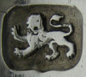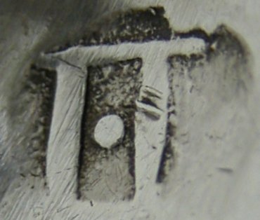 This pair of sugar tongs are an early example of bright cut tongs. I have tentatively dated these as c1778 because of the shape of the maker's mark. This mark was registered early, a large "I" & "L" with a pellet between and the tops of the two letters joined together, (Grimwade 1472 - registered on 8th February 1774). Click on any picture to enlarge |