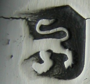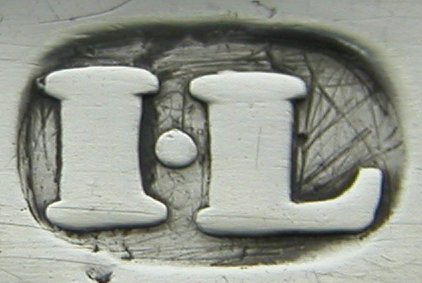 This is another pair of really interesting tongs. They are of a highly unusual shape, John Lambe experimenting again. Notice the Lion Passant is very worn & appears to have caused a stress fracture when struck. The maker's mark is a lovely clear example of the mark registered in 1782. Click on any picture to enlarge |