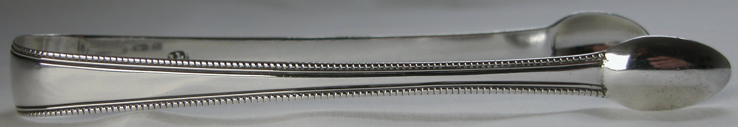 This is a pair of simple beaded thread edge tongs, dated 1800/01.