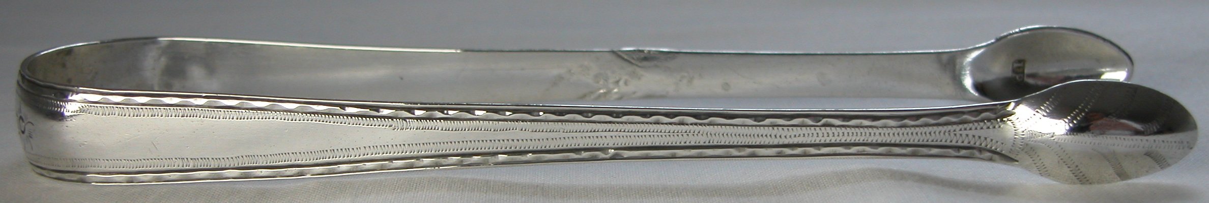 This is a standard style bright cut pair of tongs, dated between c1780 and 1784.