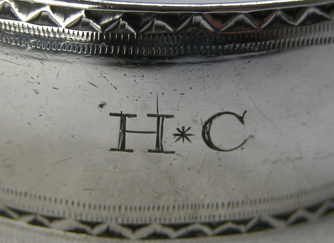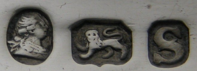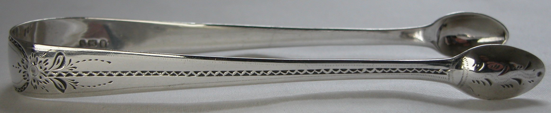 These tongs are fairly standard bright cut style and are dated 1793/94. Click here for some John Priestman maker's marks