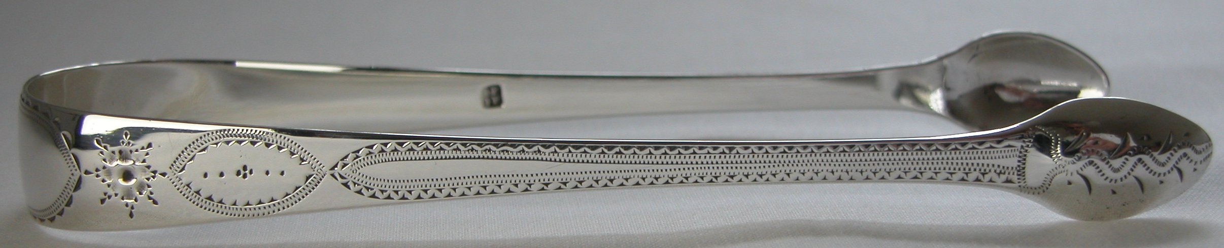 This is a fairly standard pair of bright cut tongs with nothing very remarkable about them. They are standard for the period - 1795/96.