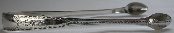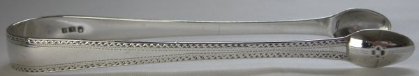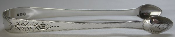 Jonathan Perkins I registered his first mark on 23rd April 1772 as a small-worker. He then went on to register a number of other marks up to 6th November 1789, many as a buckle-maker. We know that he made sugar tongs, as his partnership with his son also produced sugar tongs. Jonathan & Jonathan Perkins were father and son and registered a mark together on 5th August 1795 as plate-workers. Their partnership lasted only until 29th August 1800 when the father registered a mark on his own again. Their tongs are generally standard bright cut in style. Click here to see tongs by Jonathan Perkins Click on a picture to see more detail |