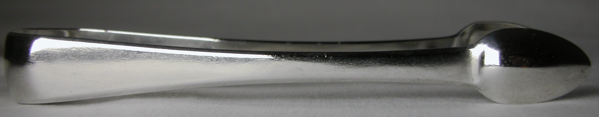 James Beebe entered his first mark as a spoon-maker on 16th August 1811 and entered several more, up to 1839. These are a plain pair of tongs, dated 1817/18. As is expected with sugar tongs of this date, they are large and solid. Click on any picture to enlarge |